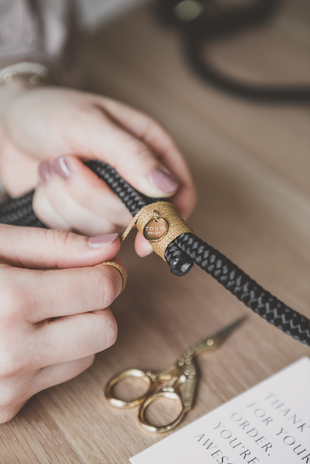 We vinden het belangrijk dat het materiaal dat we gebruiken van goede kwaliteit is en langdurig mooi blijft! Daarom verwerken we uitsluitend hardware van messing (goud) en RVS (zilver). Deze materialen zijn stevig, roestvrij en de kleur bladdert er niet vanaf.